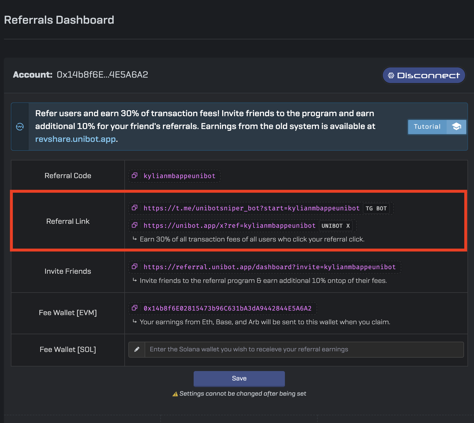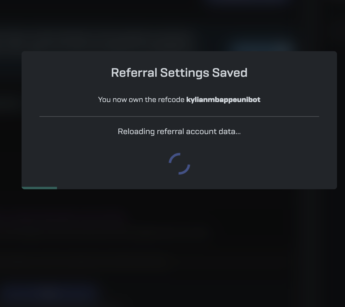 If a new user signs up for Unibot using your referral link, you can earn up to 30% of their transaction fees and an additional 10% from new users they refer (adding up to 40% in referral rewards) from trading with Unibot.