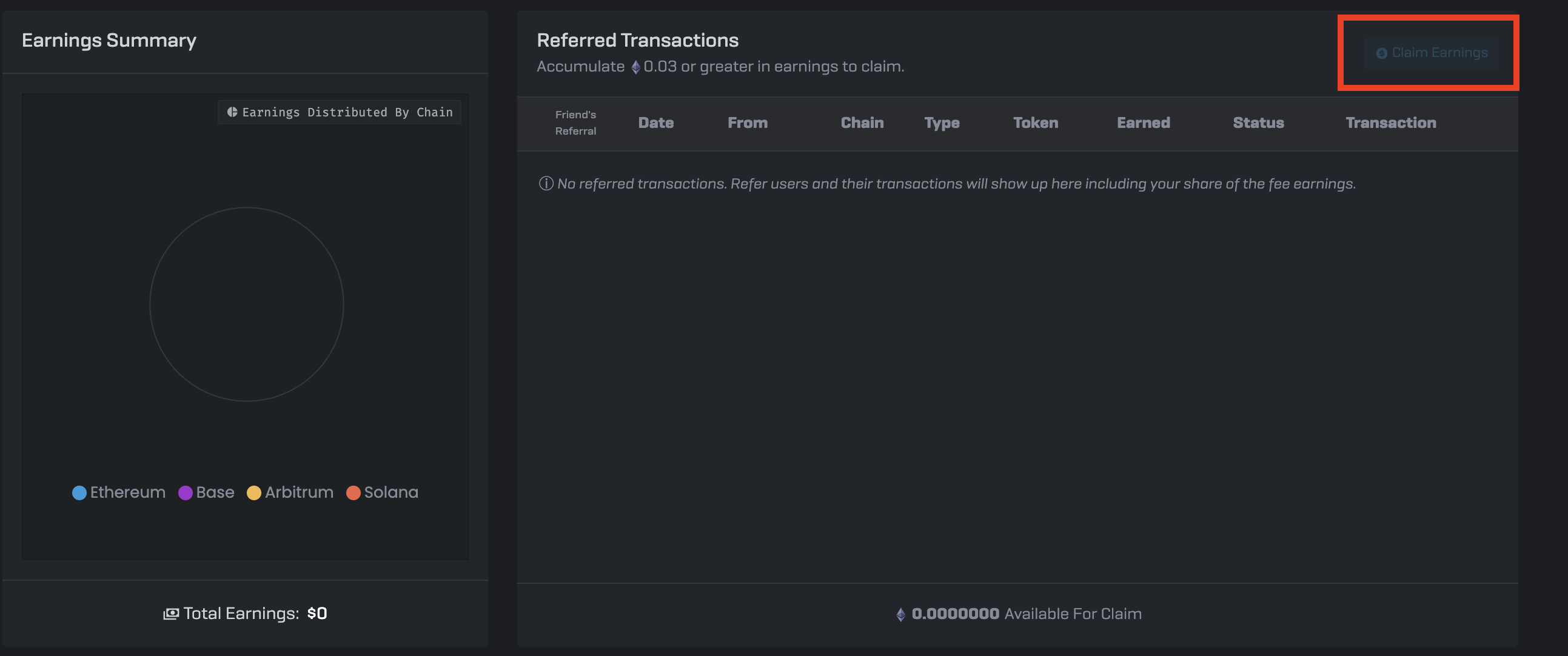 1. Go to the Referral Rewards dashboard and connect your wallet as described above.
