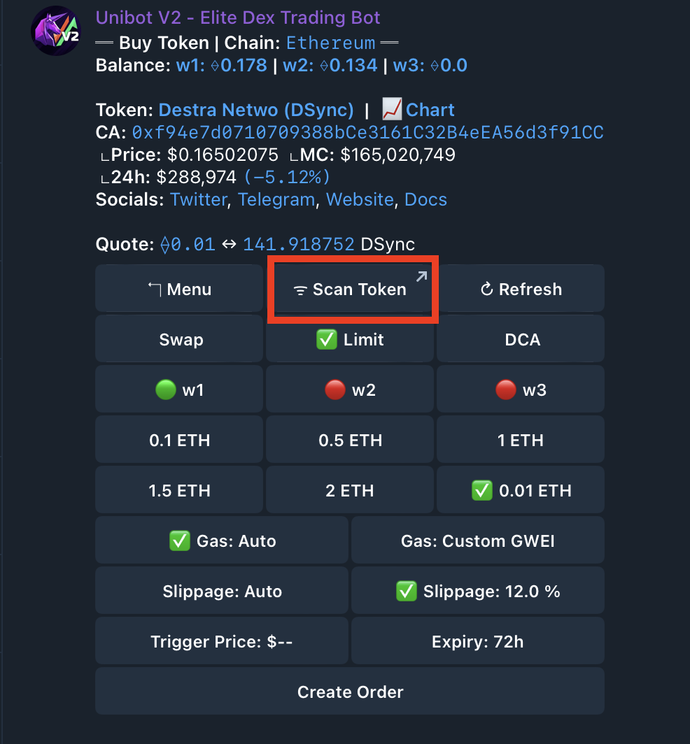 Simply paste a token address into the Telegram Bot. Then, click 'Scan Token'
