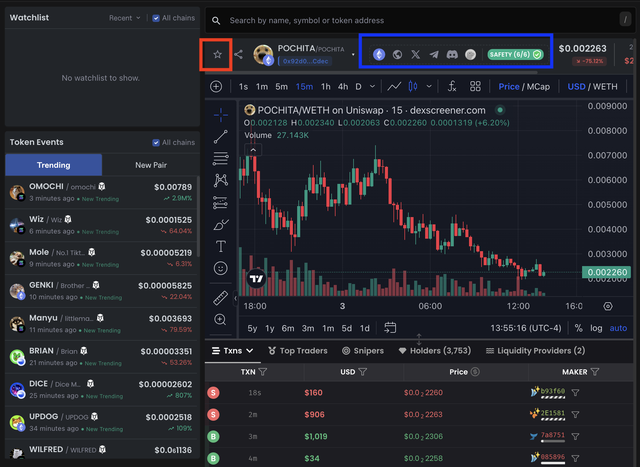 Click 'Chart,' and you will be redirected to the chart of the token you are prospecting. (See image below.)